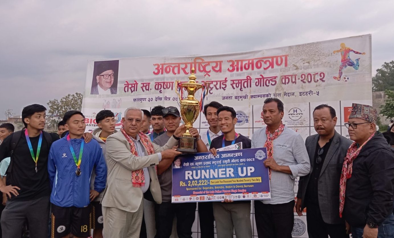 सुनसरी : पूर्वप्रधानमन्त्री कृष्णप्रसाद भट्टराईको स्मृतिमा आयोजित तेस्रो अन्तर्राष्ट्रिय गोल्डकप फुटबल प्रतियोगिताको उपाधि बसाहा क्लब उदयपुरले जितेको छ । इटहरीस्थित जनता कलेजको खेलमैदानमा आज सम्पन्न