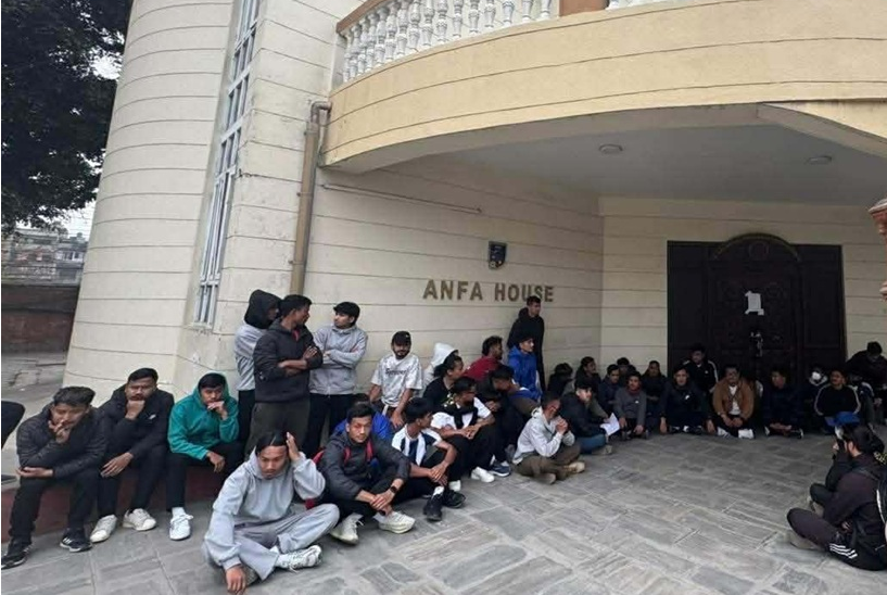 काठमाडौँ : नेपाल फुटबल खेलाडी संघले अखिल नेपाल फुटबल संघ (एन्फा) मा तालाबन्दी गरेको छ। आइतबार खेलाडीहरुले एन्फा परिसरमा विरोध प्रर्दशन गर्दै ३ बुँदे मागसहित
