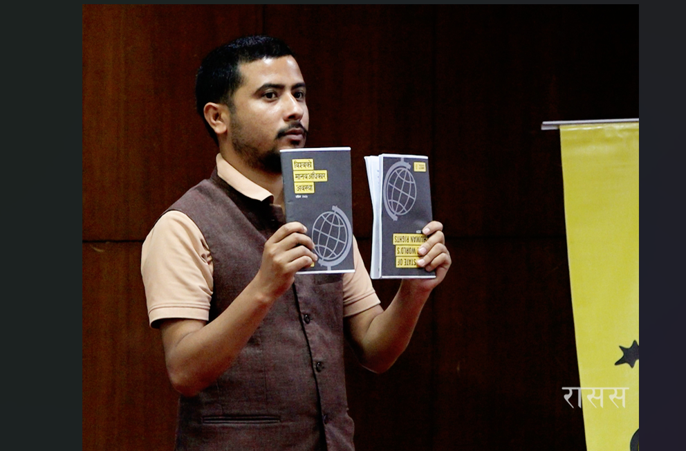 एम्नेस्टी इन्टरनेसनल नेपालका अध्यक्ष विपिन बुढाथोकीले आज सार्वजनिक मानव अधिकारसम्बन्धी वार्षिक प्रतिवेदनमा विश्वका विभिन्न ठाउँमा भइरहेका युद्ध, आर्टिफिसियल इन्टेलिजेन्स (एआई)को प्रयोग, दुव्र्यवहारजस्ता कारणले मानव अधिकारको अवस्था सन्तोषजनक नभएको उल्लेख भएको बताउनुभयो ।