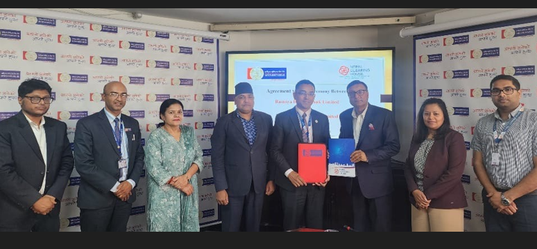 आज यहाँ आयोजित कार्यक्रममा राष्ट्रिय वाणिज्य बैंक लिमिटेडका प्रमुख कार्यकारी अधिकृत देवेन्द्ररमण खनाल र नेपाल क्लियरिङ हाउस लिमिटेडका प्रमुख कार्यकारी अधिकृत निलेशमान सिंह प्रधानले सम्झौतामा हस्ताक्षर गर्नुभएको थियो । सो अवसरमा बैंकका उपकार्यकारी अधिकृत देवेशप्रसाद लोहनी तथा दुर्गा कुमारी कंडेल र विभागीय प्रमुख ऋषिराम ढकाल उपप्रमुख दिनेश ओझा तथा एनसिएचएलका तर्फबाट चिफ अपरेटिङ अफिसर मुन्नि राजभण्डारी र मनिष पटेलको उपस्थिति रहेको थियो ।