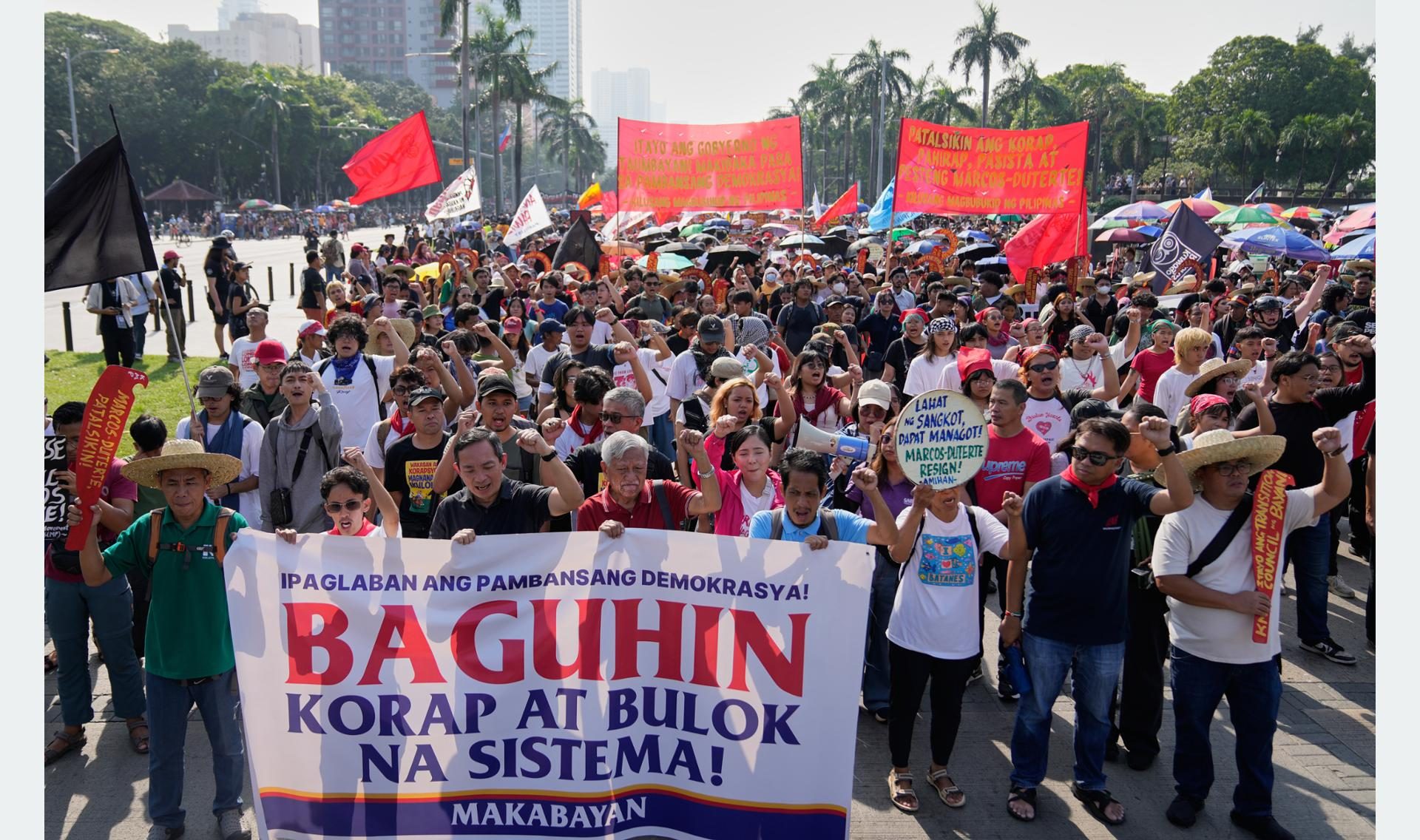 मनिला : फिलिपिन्समा आइतबार रोमन क्याथोलिक चर्चका पादरीहरूसहित हजारौँ नागरिकले बाढी नियन्त्रण परियोजनामा भएको ठूलो भ्रष्टाचार काण्डविरुद्ध सडकमा उत्रिएका छन् । प्रदर्शनकारीहरूले देशलाई नै हल्लाइदिएको अनियमिततामा संलग्न शीर्ष सांसद र सरकारी अधिकारीहरूलाई तत्काल मुद्दा चलाउन र चोरी भएको रकम फिर्ता गराउन कडाइका साथ माग गरे ।