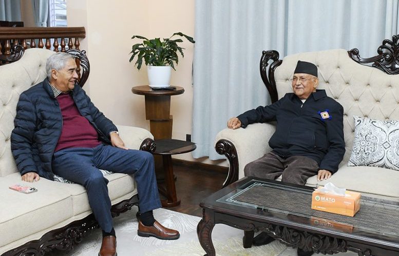 एमालेको ११ औँ महाधिवेशनबाट तेस्रो कार्यकालका लागि अध्यक्ष चुनिएपछि ओली पहिलो पटक सभापति देउवालाई भेट्न उनकै निवास महाराजगञ्ज पुगेका हुन्।