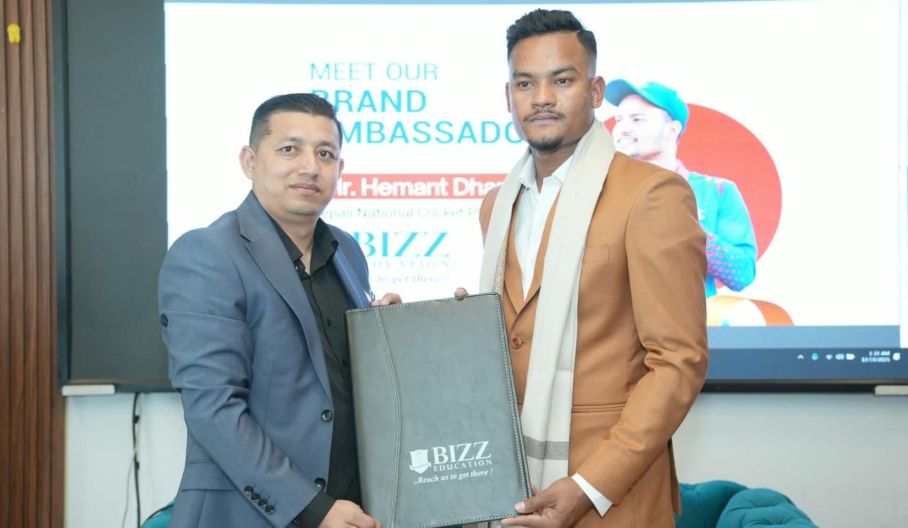काठमाडौँ : क्रिकेट खेलाडी हेमन्त धामीलाई ‘बिज एजुकेशन’ले ब्रान्ड एम्बासडरका रूपमा अनुबन्ध गरेको छ । उनलाई तीन वर्षका लागि ब्रान्ड एम्बासडरका रूपमा अनुबन्ध गरिएको हो ।
