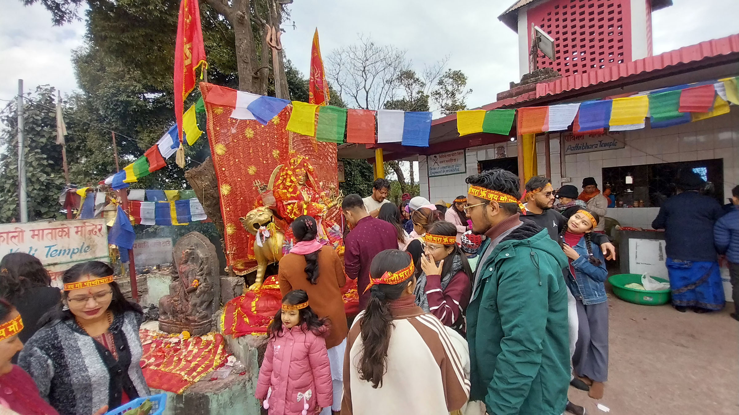 काठमाडौँ : इलामको रोङ गाउँपालिका-३ कुटीडाँडास्थित पाथीभरा मन्दिरमा पूजाअर्चना गर्दै भक्तजन ।