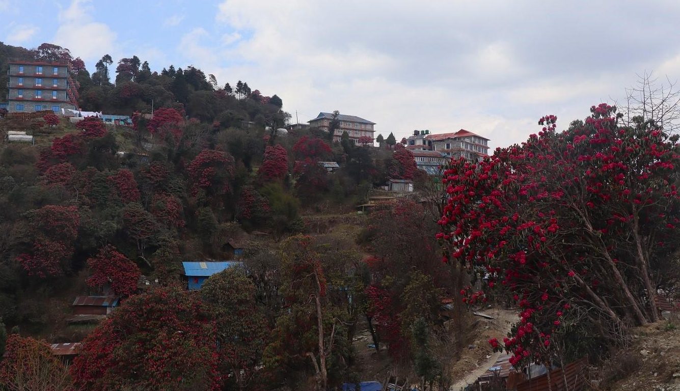घोडेपानी : यहाँको अन्नपूर्ण गाउँपालिका–६ मा रहेको घोडेपानीको पाखा गुराँस फुलेर रङ्गिएको छ ।