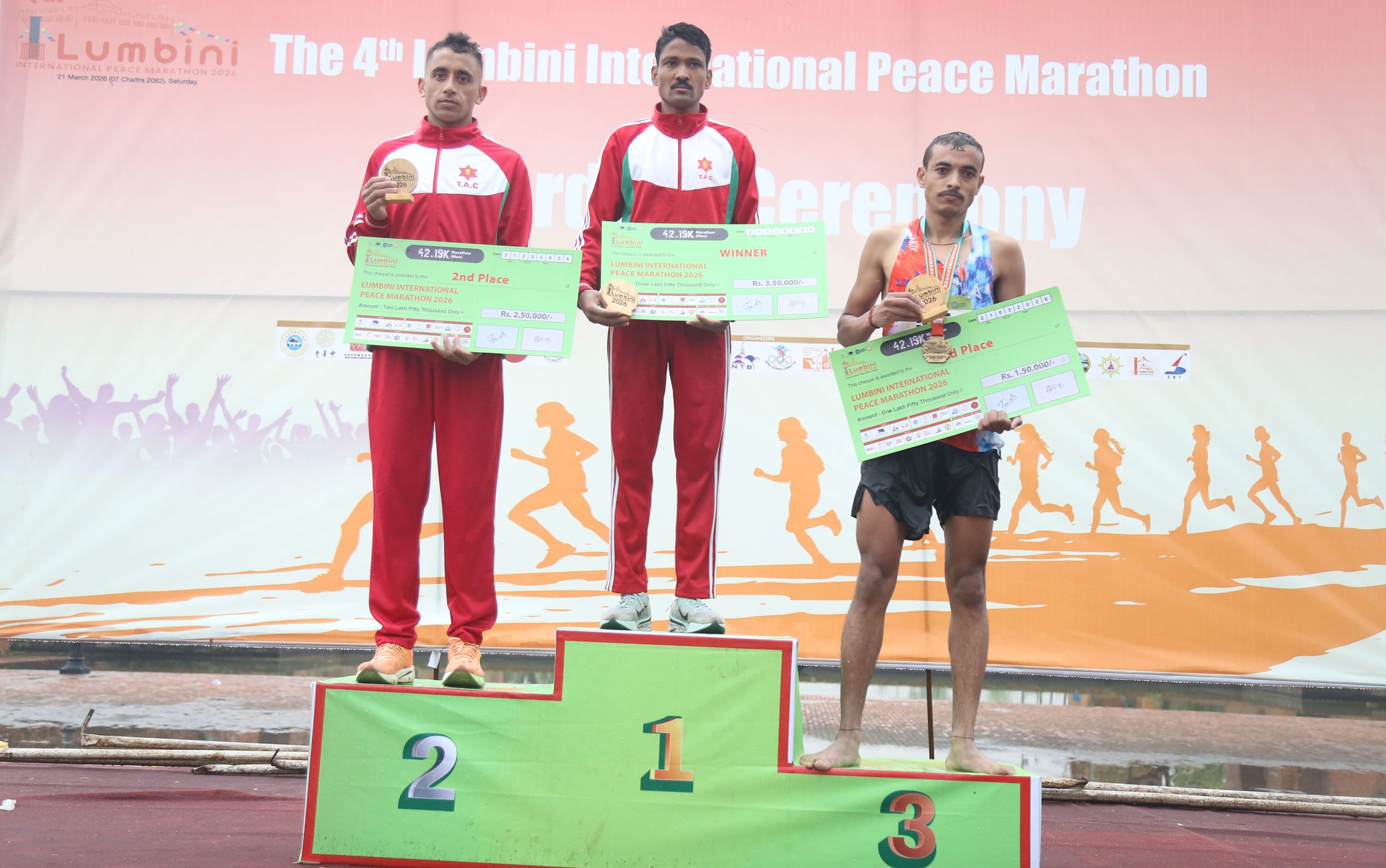 उनले ४२ किलोमिटरको दुरी २ घन्टा १७ मिनेट ५५ सेकेन्डमा पूरा गरी उपाधि हात पारेका हुन्। नेपाल ओलम्पिक कमिटीको आयोजना तथा संस्कृति, पर्यटन तथा नागरिक उड्डयन मन्त्रालय, लुम्बिनी विकास कोष, नेपालस्थित चिनियाँ राजदूतावास र लुम्बिनी सांस्कृतिक नगरपालिकाको सहयोगमा सम्पन्न प्रतियोगितामा दोस्रो स्थान पनि त्रिभुवन आर्मी क्लबकै शुशिल कुमार शाहीले २ घन्टा १८ मिनेट १६ सेकेन्डमा दौड पूरा गरी हात पारेका छन्।