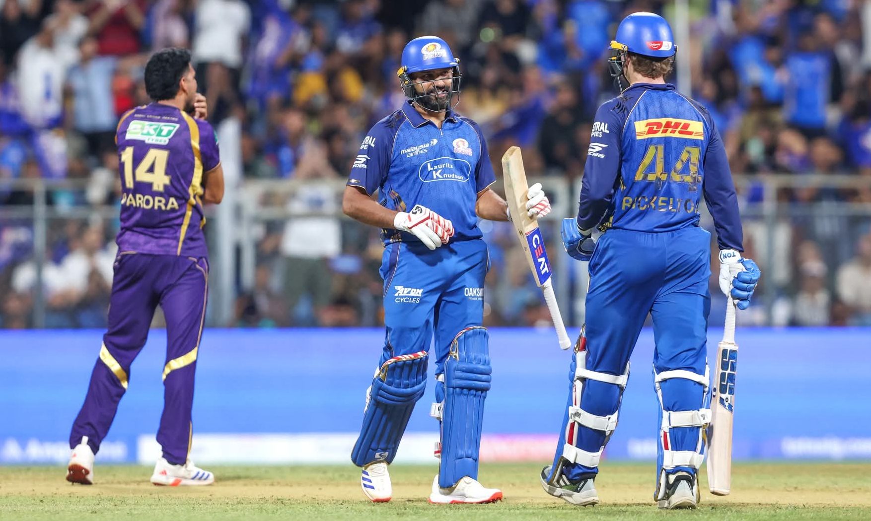 रिकेल्टनले ४३ बलमा ४ चौका र ८ छक्कासहित ८१ रन बनाए । रोहितले ३८ बलमा ६ चौका र ६ छक्कासहित ७८ रन बनाए । यी दुई मिलेर पहिलो विकेटका लागि १४८ रनको साझेदारी गरे ।