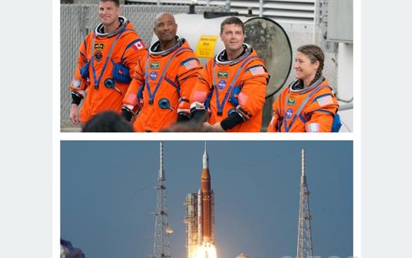 तीन अमेरिकी र एक क्यानेडियाली अन्तरिक्ष यात्री बोकेको ३२–तले स्पेस लन्च सिस्टम रकेट फ्लोरिडास्थित केनेडी स्पेस सेन्टरबाट साँझतिर उडेको थियो।