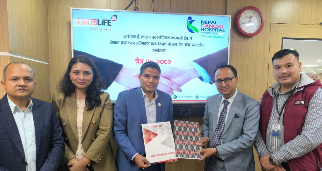 काठमाडौं : आइएमई लाइफ इन्स्योरेन्स कम्पनी र नेपाल क्यान्सर हस्पिटलबीच समझदारीपत्रमा हस्ताक्षर भएको छ ।