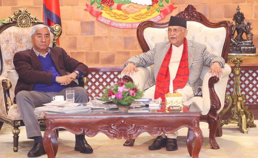 काठमाडौं : सरकार परिवर्तनको चर्चाका बिच प्रधानमन्त्री केपी शर्मा ओली र कांग्रेस सभापति शेरबहादुर देउवाबिच भेटवार्ता भएको छ । प्रधानमन्त्री ओलीले सभापति देउवालाई बालुवाटार बोलाएर